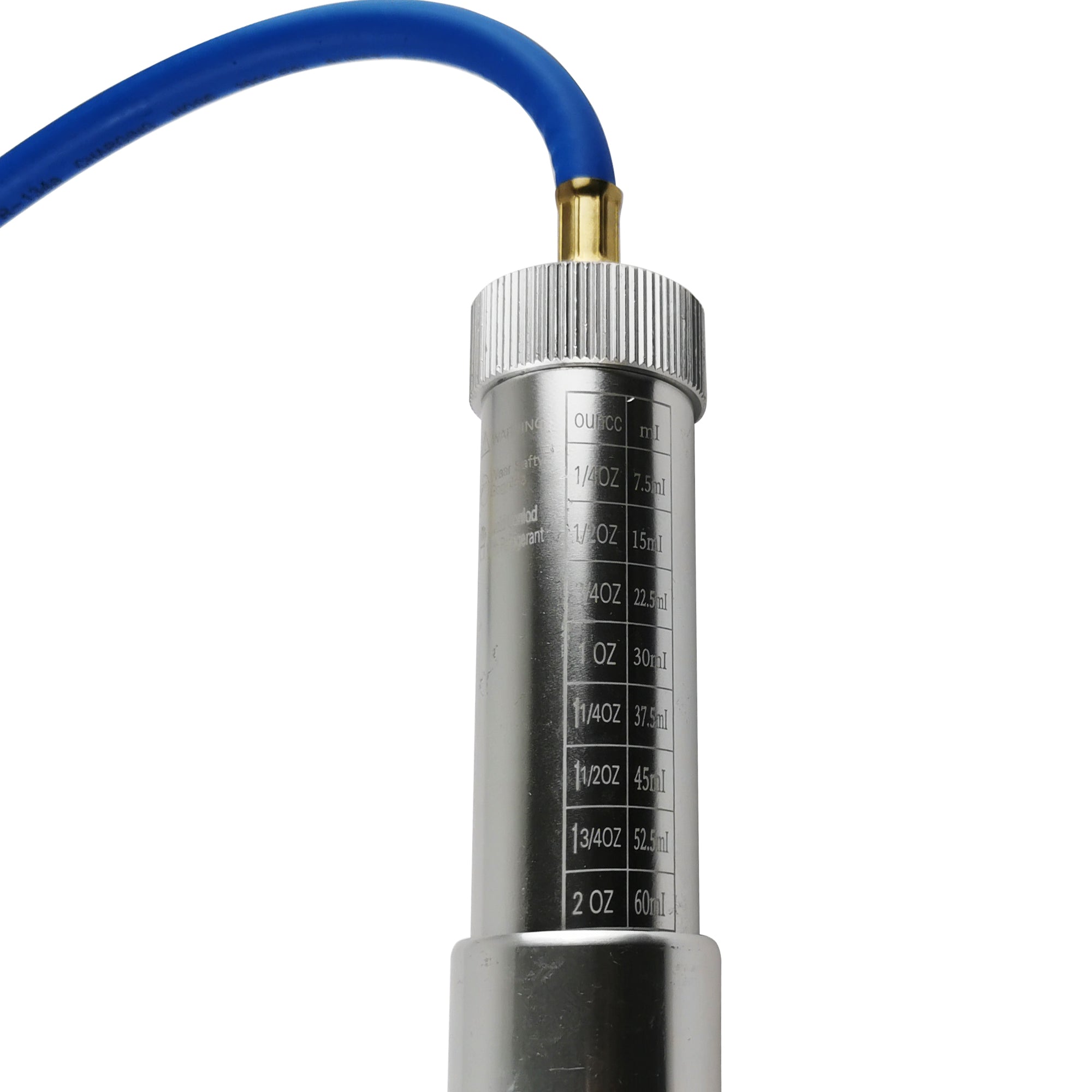 Pour the liquid (Refrigeration Oil / Fluorescent Dye / Leak Detection Dye) into the cylinder
