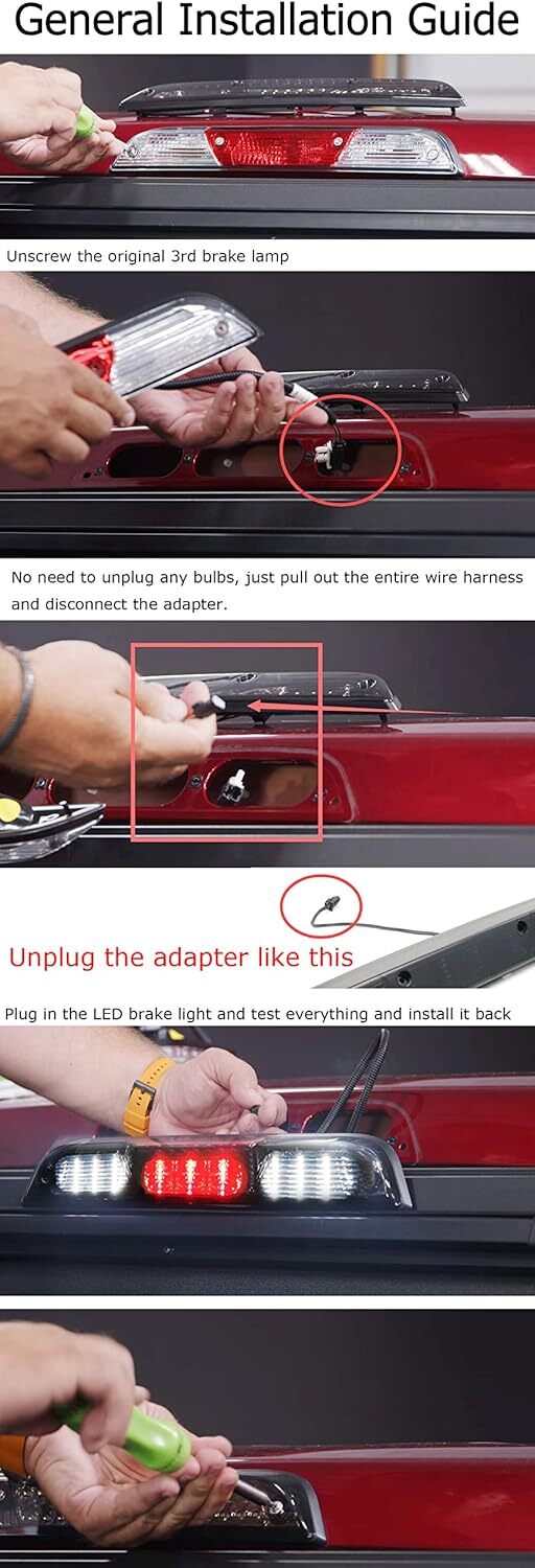IP68 Waterproof: The 3rd Brake Light made from ABS materials with high-density foam mounted back, preventing water snow or heavy rain leaking in.